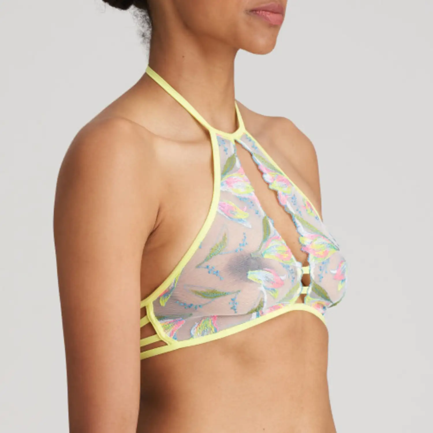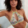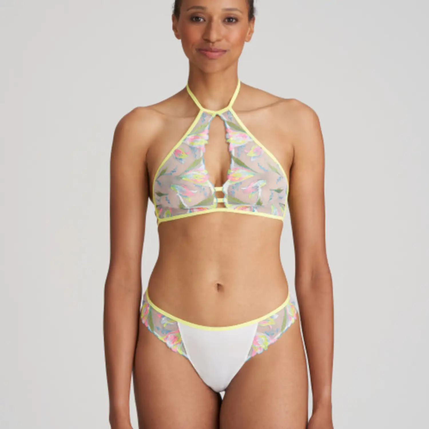 [sk_markdown]bh Marie Jo Yoly. Deze voorgevormde bralette sluit perfect aan bij de trend van beugelloze bh’s. Het model met rijke broderie omarmt je natuurlijke vormen en voelt als een second skin. Electric Summer speelt met fluo neons op een witte basis – goed voor een instant dopamine rush![/sk_markdown]