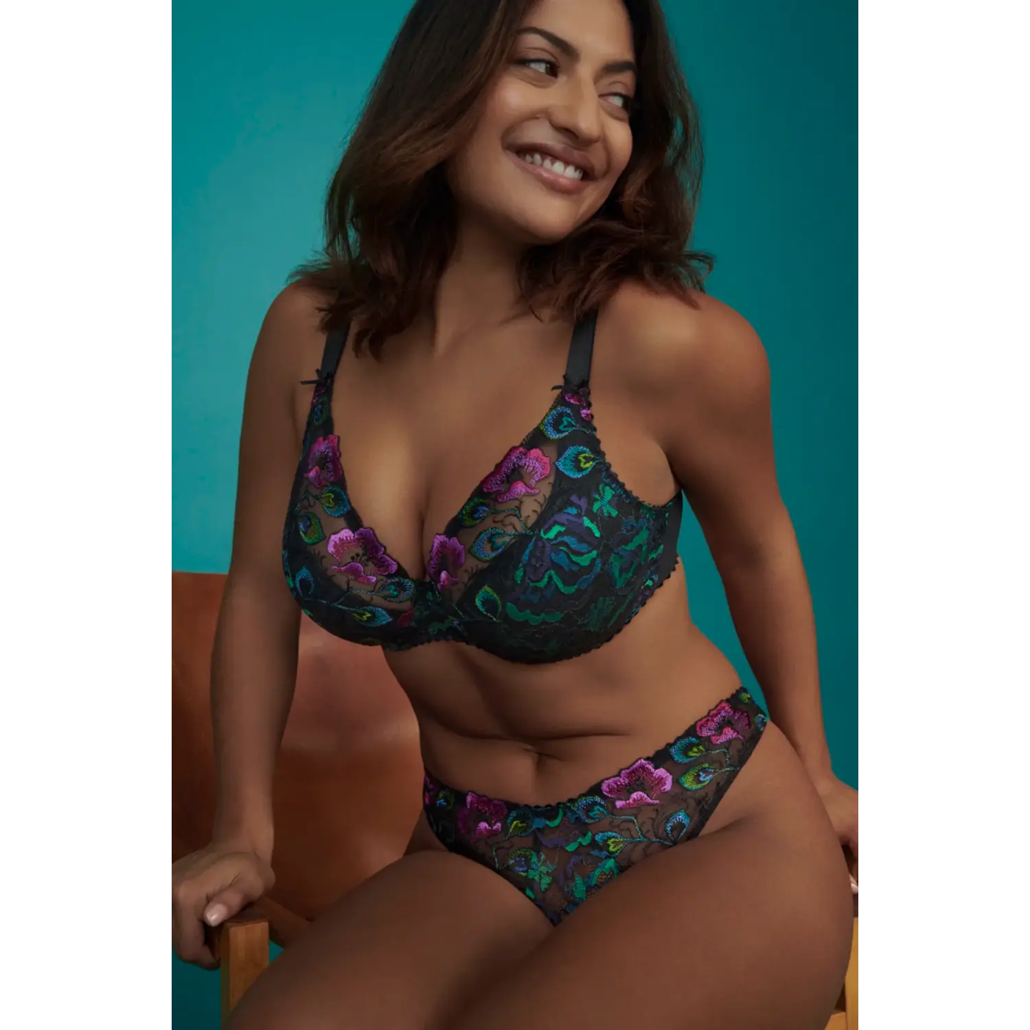 [sk_markdown]Plunge bh met halve mousse cups, die diep zijn uitgesneden. Peacock Feather is een mix van intense kleuren. Warm fuchsia, intens blauw en groen vormen een prachtig contrast met de zwarte basis.[/sk_markdown]