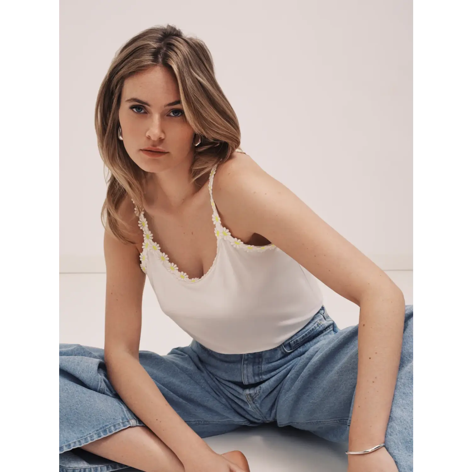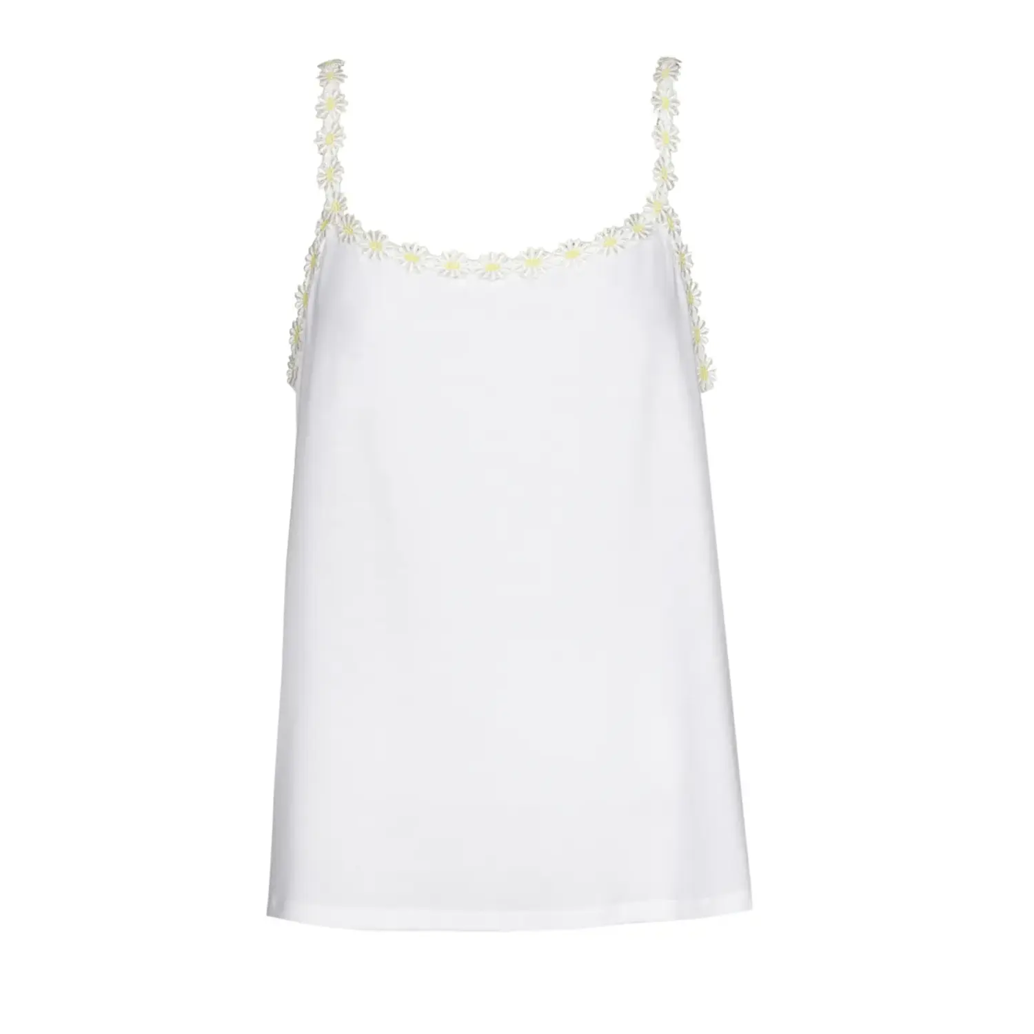 Deze top is 100% fashionable in ivoor wit met een geel bloemetje.[/sk_markdown]
