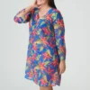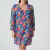 [sk_markdown]Korte kaftan met een kleurrijke jungleprint, elegante kimonomouwen en een diepe V-hals vooraan. Tropical Rainforest is een exotische en superflatterende mix van felblauw, jungle-groen en oranje.[/sk_markdown]