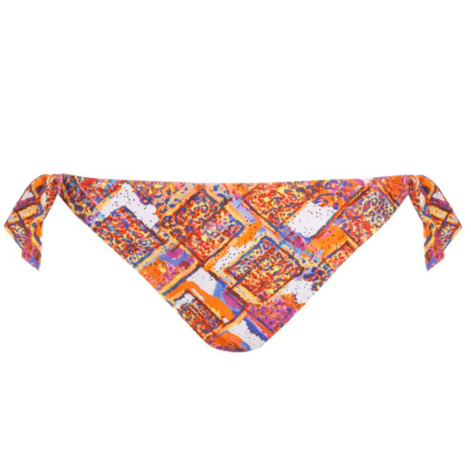 [sk_markdown]bikini slip PrimaDonna Swim Navalato. Bikinislip in badstof met een discoprint, met speelse striklinten opzij. Gouden highlights vangen het zonlicht. Knoop de lintjes hoog in de taille voor een sexy look, of draag klassiek op je heupen. Summer Sunset combineert de kleuren van een zuiderse zonsondergang met roze, blauw, en gouden glitters.[/sk_markdown]